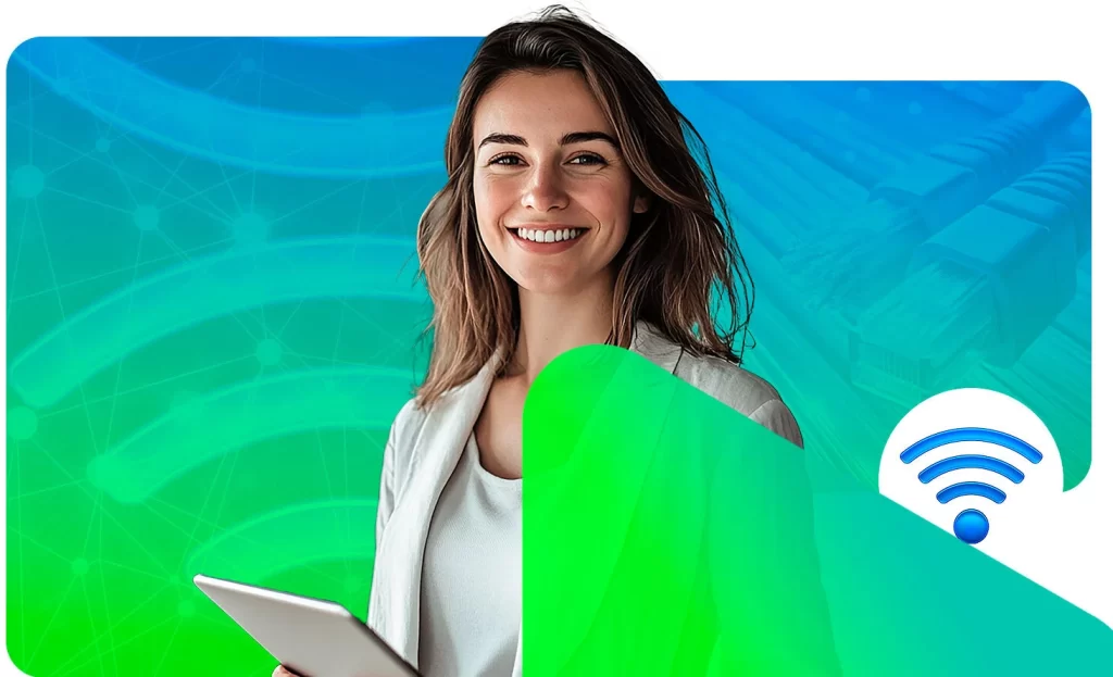 Experimente uma internet corporativa com velocidade simétrica, segurança avançada e suporte 24h